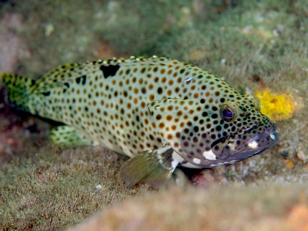 最近別のポイントで立て続けに逃げないノミノクチに出会いました。コイツは全身丸出しで、近づいて写真を撮りまくっても全く動じず、アカハタ並の心臓強度でした。