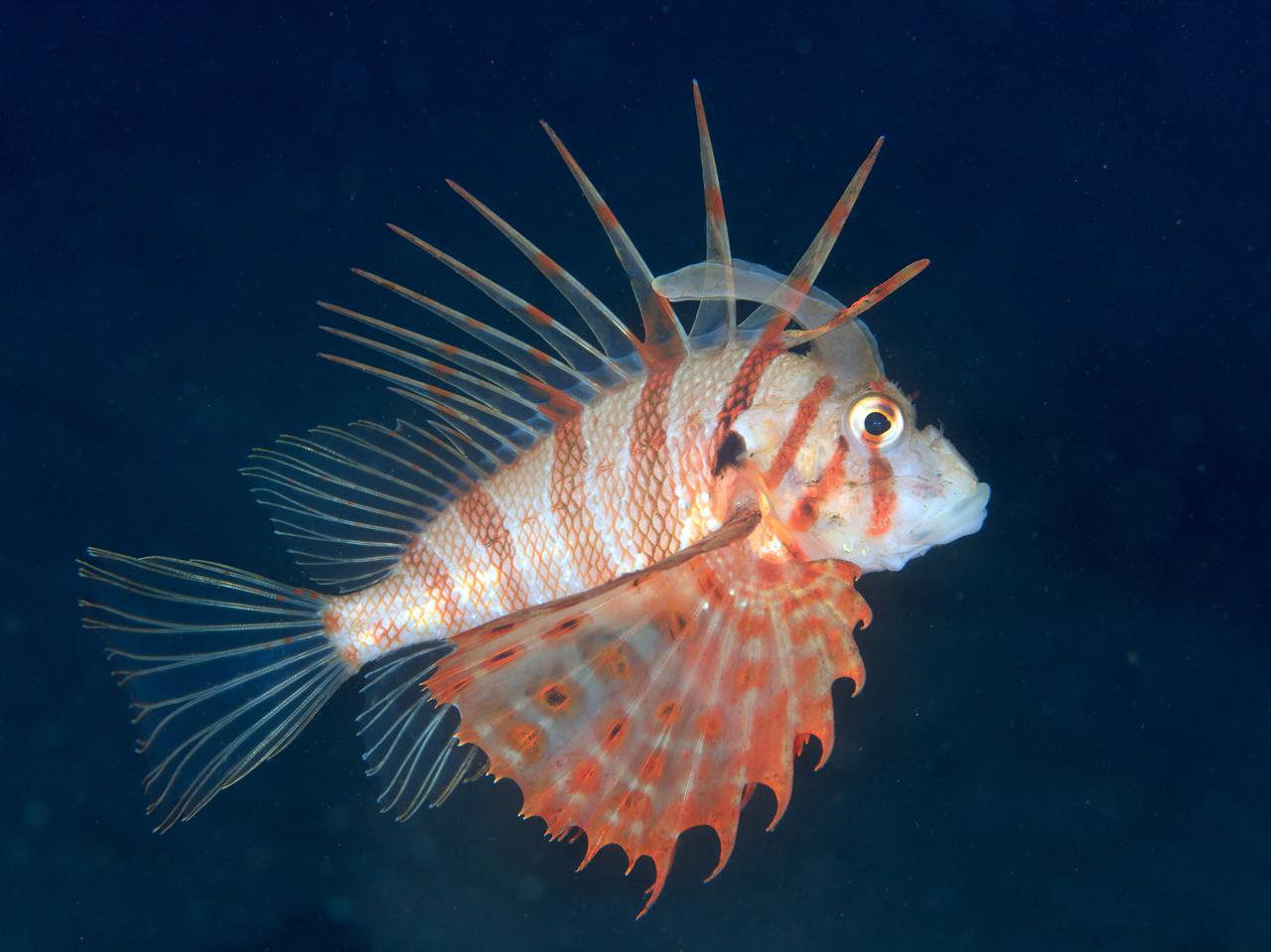 そうなると、烏帽子を持ったオスのエボシカサゴに出会えるんじゃないか?と期待して、エボシカサゴ目撃例の多い場所に行ってみたら、想像以上に立派なエボシを持った個体に出会うことができました!!