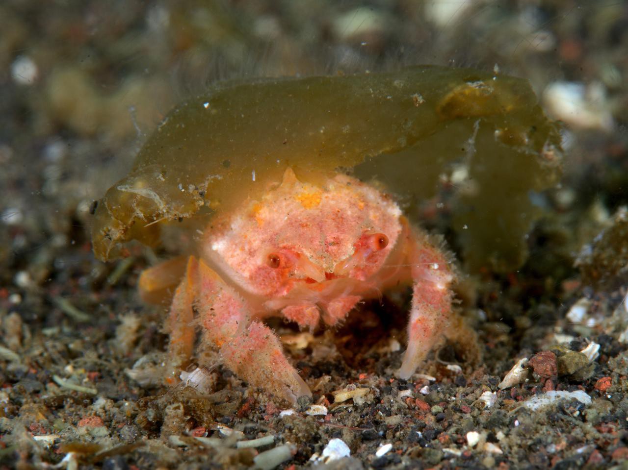 この日は透明度が悪かったので、近視眼になって泳いでいたら、フクロノリを被ったカイカムリの仲間に出会いました。
