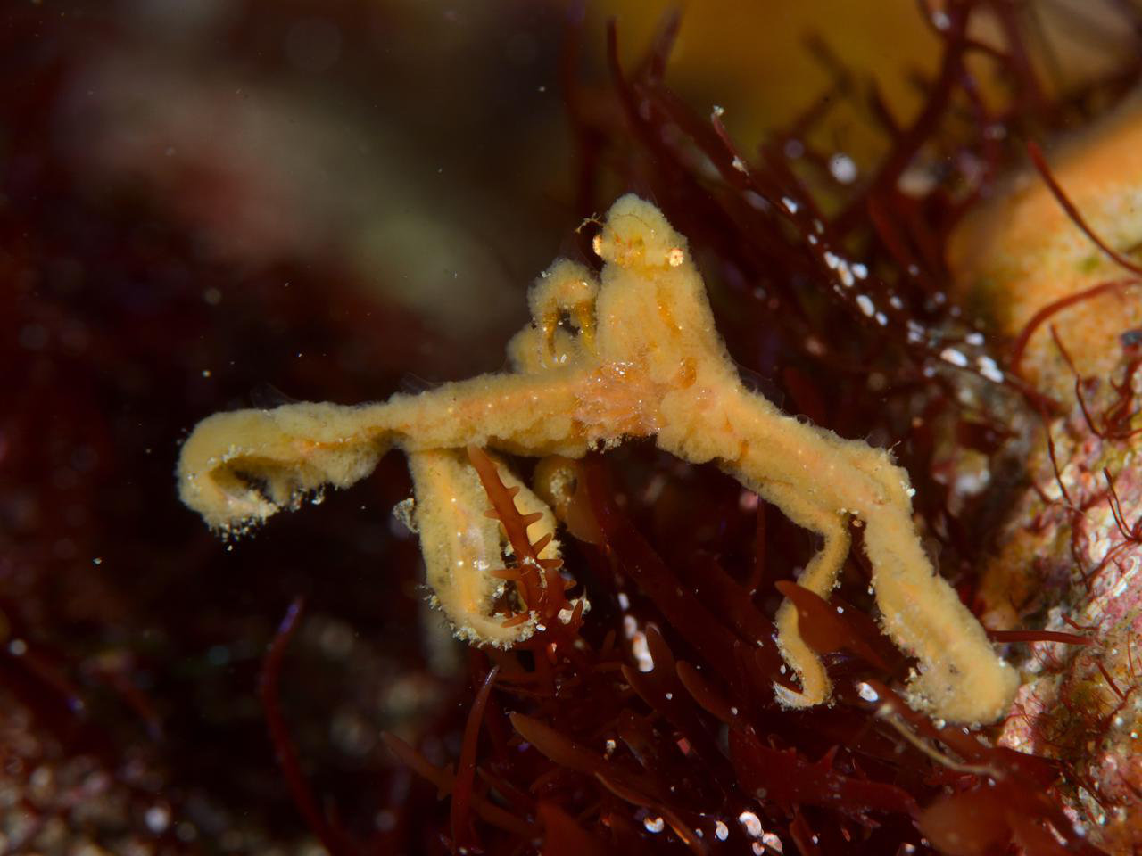 カイメンをまとってモフモフになったクモガニに出会いました。 モフモフなのにナゼか可愛いとは言い切れない、得体の知れない感じが味わい深い! (2026-02 大瀬崎 -15m)