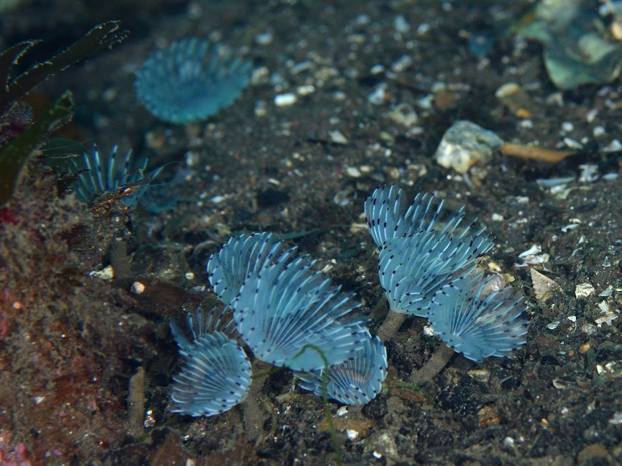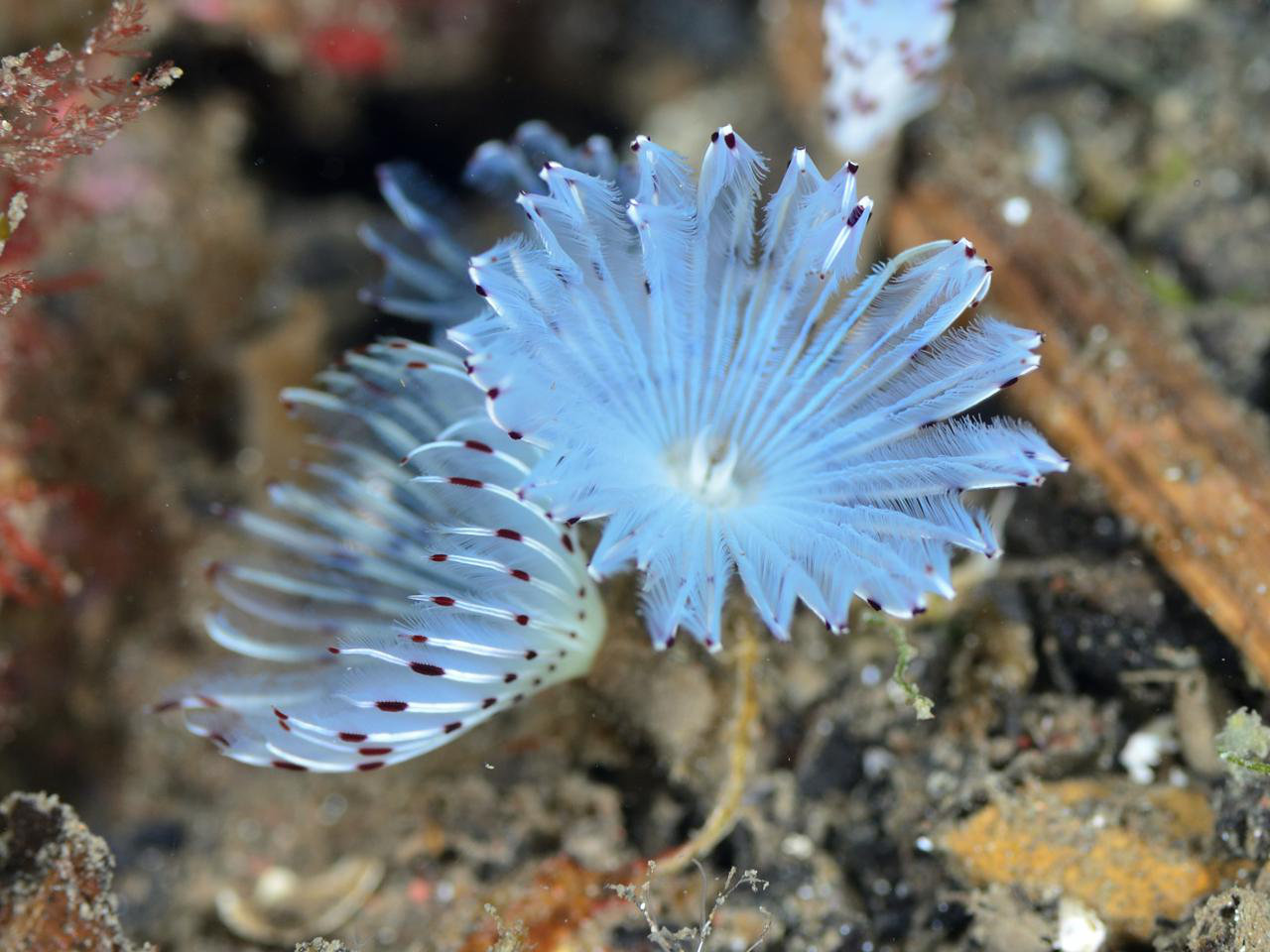 生えてる場所は泥っぽくてキレイとは言えない場所でしたが、そんな場所にいるケヤリムシがこんなキレイな鰓冠を持ってるのがギャップ萌えです。