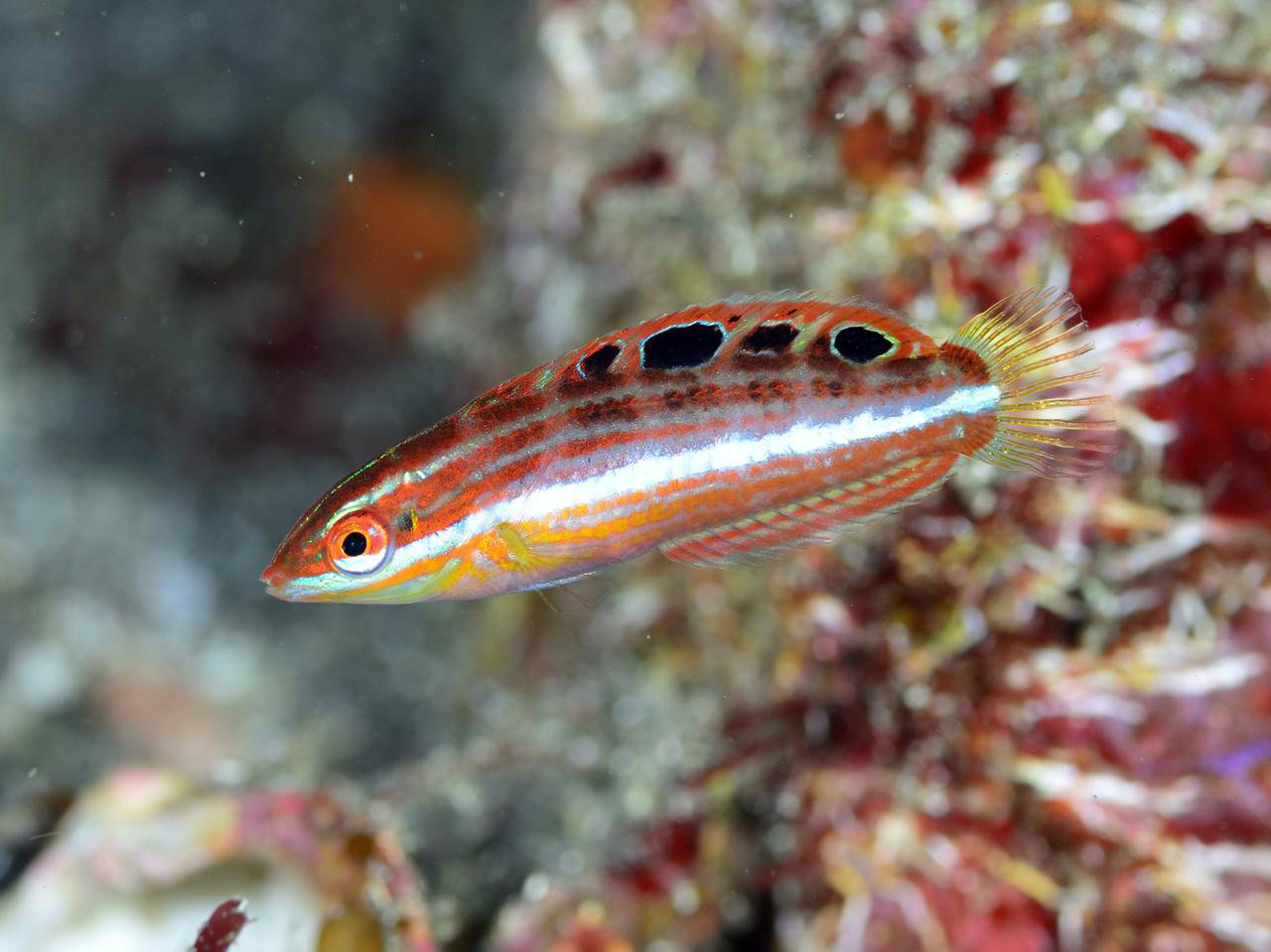 ホンベラやイトヒキベラが棲むような普通の岩礁にいました。