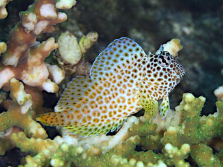 コイツは枝サンゴに着いて生活していて、危険が近づくとさっとサンゴの枝の間に隠れてしまって、なかなか手強いヤツです。この日は狙いの生態観察まで時間があったので、セダカギンポの全身を撮るべく粘ってみました。1時間弱かけてサンゴの上に出てきたチャンスが2回ありましたが、距離を詰める前に引っ込まれたりしてなかなか上手く行きません。そろそろ移動しなきゃなーと諦めかけてた時、サンゴから出てきてくれて何とか全身を捉えることができました!