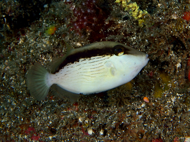 ツマジロモンガラに似てるけど、ツマ(尾ビレの先っぽ)が白くないんで、簡単に見分けがつきます。でも、可愛さレベルは同レベル!巣穴から出たり入ったりする姿がキュートです。 (2017-09 大瀬崎 -30m)