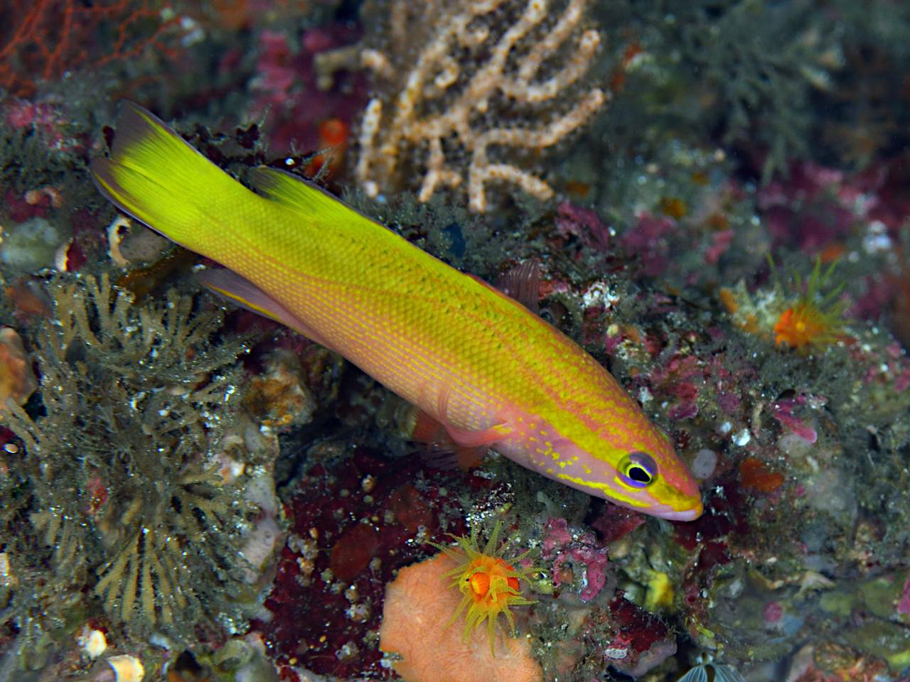 久しぶりのIOP深場で出会ったツルグエは、なんだかみんな黄色が鮮やかでびっくりします。 以前はフツーに黒い帯の入ったツルグエばっかりだったと思うのですが、、、たまたま、このとき僕が出会ったツルグエが黄色いヤツばかりだっただけなのかな? (2024-07 IOP -47m)