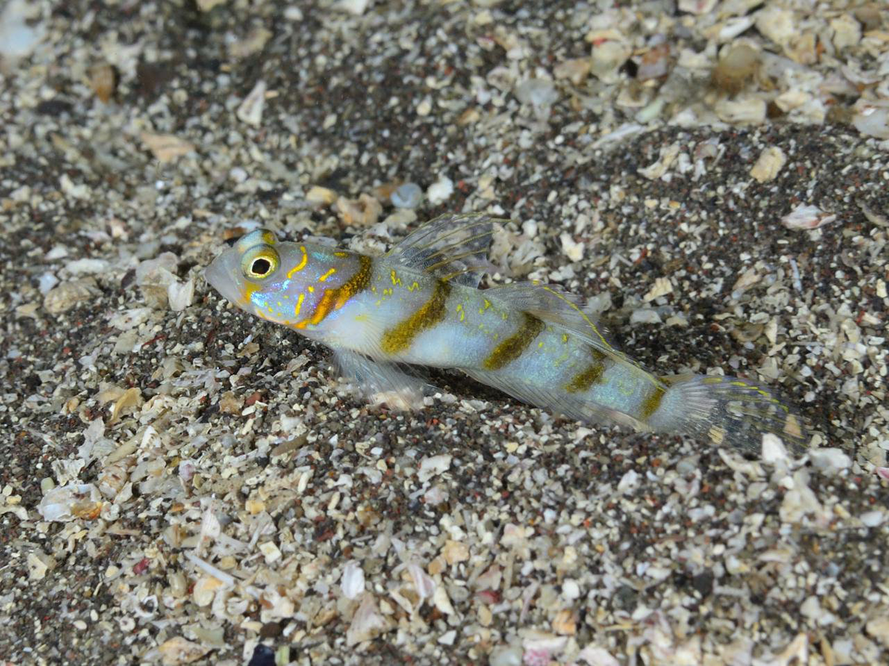 ちょっと深めのあまり砂が動かない砂地にいました。近くにはナノハナフブキハゼもいましたが、ナノハナフブキハゼに比べると個体数は多くないようです。