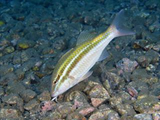 以前はウミヒゴイの一種1と呼んでいましたが、Parupeneus biaculeatusになるようです。ポインテッドゴートフィッシュという英名があるみたいです。そして、2015年にミナベヒメジの和名が提唱されました。