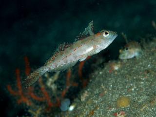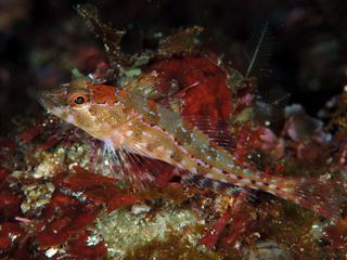 コイツはIOPの深場には結構いるみたいです。バディのビデオには何回か登場してます。その映像を見るたびに、美しいハナダイが乱舞する深場でよくこんなジミなサカナを撮る気になったもんだ。と思ってたけど、、、、実際会ってみるたコイツは、カイメンの先っちょに止まったりして、結構カワイイじゃないか!!