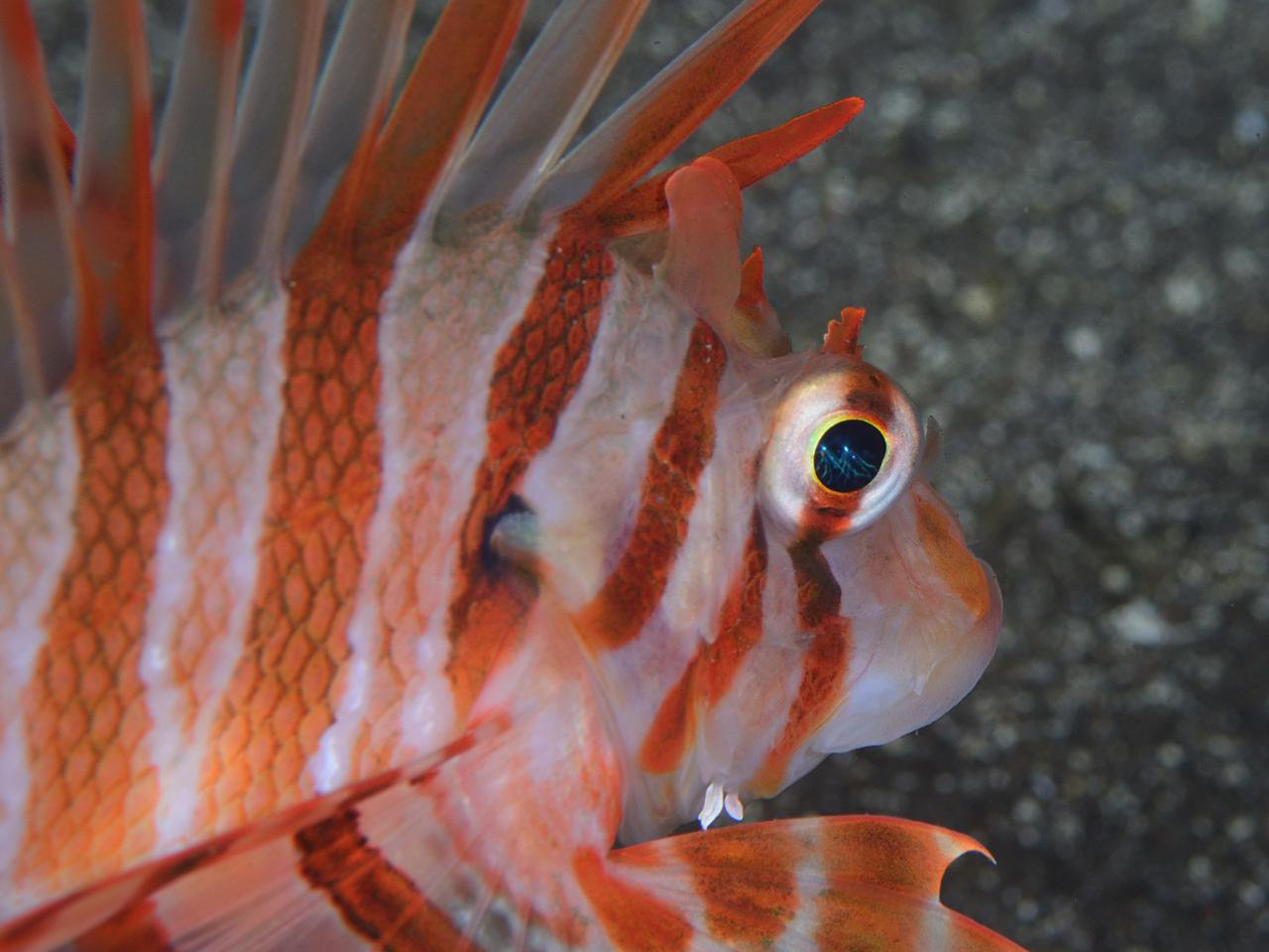 大瀬崎では時々目撃されるこのサカナ、初めて出会うまでシーキングの赤堀さんに3回ぐらい場所を教えてもらいながらも、会えなかった縁のないサカナでした。やっと会えて感動です。でも、ん?烏帽子をかぶっていないゾ!!ってことで、今度は烏帽子をかぶった♂のエボシカサゴに出会う目標ができました。1種類で何度でも楽しめますね。 (2010-06 大瀬崎 -32m)
