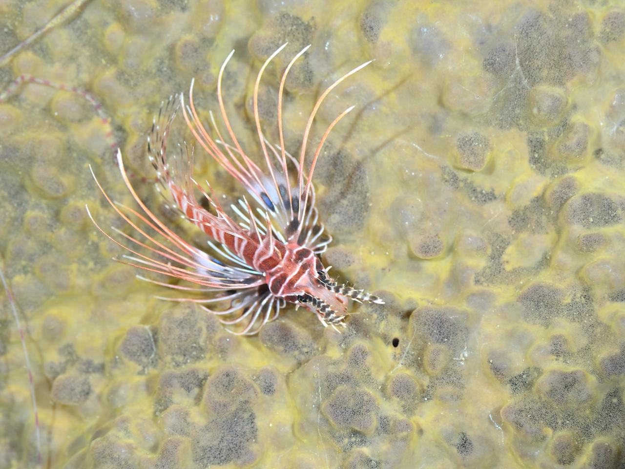 ミズヒキミノカサゴと似てるけど、胸ビレの軟条がシマシマじゃないところで見分けられます。