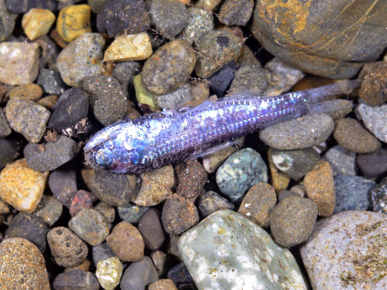 波打ち際でお亡くなりになっていました。死んでるサカナを掲載するのはどうかとも思いましたが、大瀬崎で出会った記録として載せておきます。 いつか、ご存命のハダカイワシに出会って、写真を入れ替えたいですね。 (2026-02 大瀬崎 -1m)