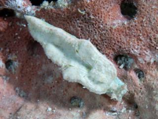 2006年のゴールデンウィーク前の慶良間滞在で、複数個体に会えたんで珍しいウミウシでは無いと思うのですが、横から見たときのエメラルドグリーンの輝きが印象的です。小野さんによれば、背中に八の字型の溝があるのが特徴だそうですが、その特徴が無くても十分個性的ですネ。