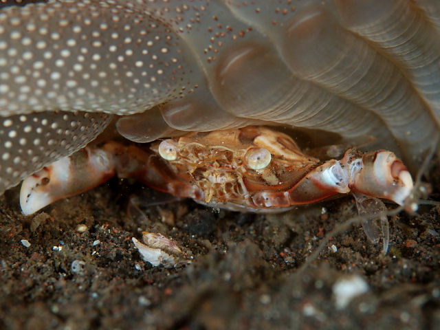 カニの撮影をする機会ってそんなに多くは無いので、ついつい正面から撮ってしまったり側面から撮ろうとしたりしてしまいますが、やっぱりカニは背面を撮っておかねばなりませんね。 (2011-07 大瀬崎 -11m)