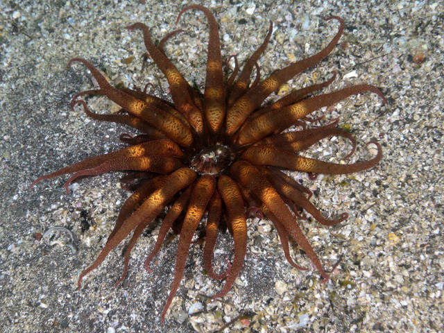 ずっとコイツはスナイソギンチャクだと思ってたのですが、違ったのですね。どーりでエビが付いていないワケだ。確かに名前の通り太い腕な感じ。 (2018-06 大瀬崎 -22m)