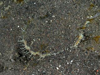 コイツの貝殻は表裏がハッキリしていて、表は平らで裏は丸まっています。普段は平らな面を上にして砂に埋まりながら、貝を少し開いて軟体部を出しています。最初に掘り起こしてみたときは、想像以上の厚みにびっくりしました。(^^; (2017-12 大瀬崎 -18m)