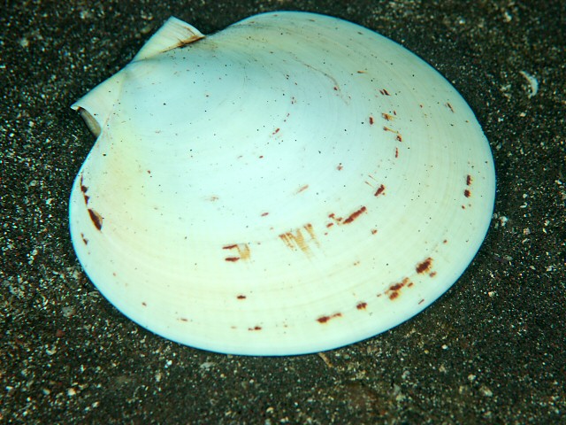 こーやって落ちてるとただの美味そうなカイだけど、ちょっと突くとフリスビーのように飛んでゆく姿は初めて見るとかなり驚愕です。でも、いつも蝶番になってる方を前にして飛ぶと思って、そっちに手を添えて突いてみるんだけど、パクパクする方を前にして飛んでゆくんですよね~。これも不思議。