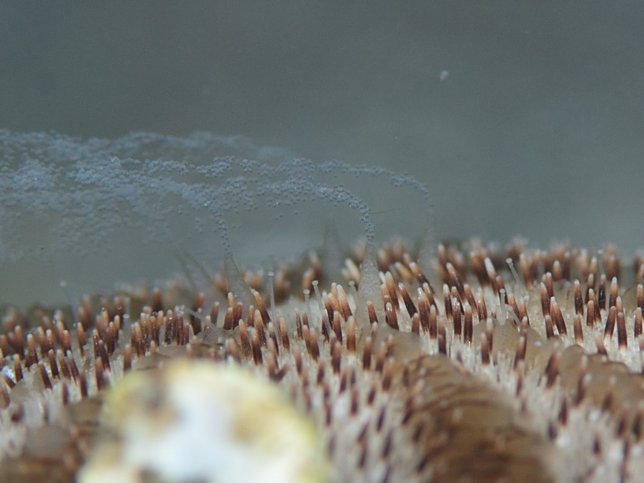 こないだ「ウニハンドブック」を眺めてたら、ヤマタカタコノマクラってのが載ってました。花紋(真ん中の花のような模様)がちっちゃくて、真ん中が少し盛り上がっているようです。こーゆー情報は頭の片隅にインプットしておけば、咄嗟の出会いに反応できると言うものです。で、出会ったのがコイツです。いやっ、逆に花紋がデカいのですけどね。じゃぁ、今まで出会ってたのがヤマタカタコノマクラになったりして?という淡い期待を抱きつつ撮影しました。