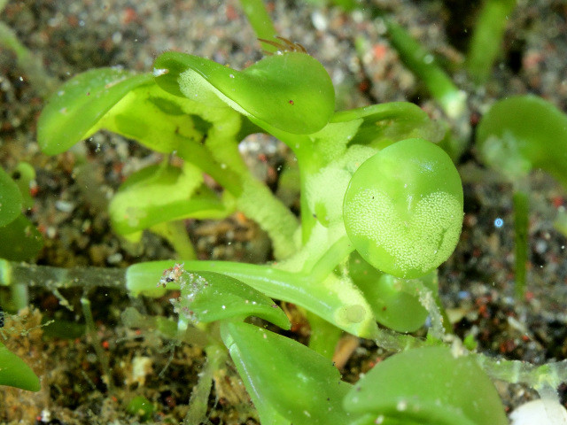 ナギサノツユって、数年前までは伊豆の海にはあまりいないウミウシだと思ってたのですが、よくよく探してみると結構いるようです。数mmサイズが目に入るか?ってことのようです。比重の重いナギサノツユは巻き上げて探すのも難しいから、目を慣らさないと見つけられないのかな?自分にはムリかも。写真の個体も友人に教えてもらっちゃったし。。。